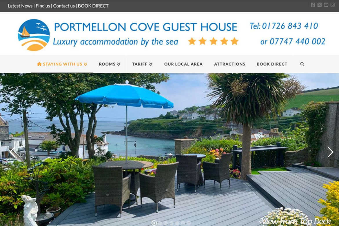 Bed Breakfast Cornwall. It was vital for my client to have their website totally reflect the location and the beautiful views from the windows, doors and garden of this bed and breakfast in Cornwall. It was important to have quality images that truly reflected the property and views to have an instant impact for any visitors to their home page…
